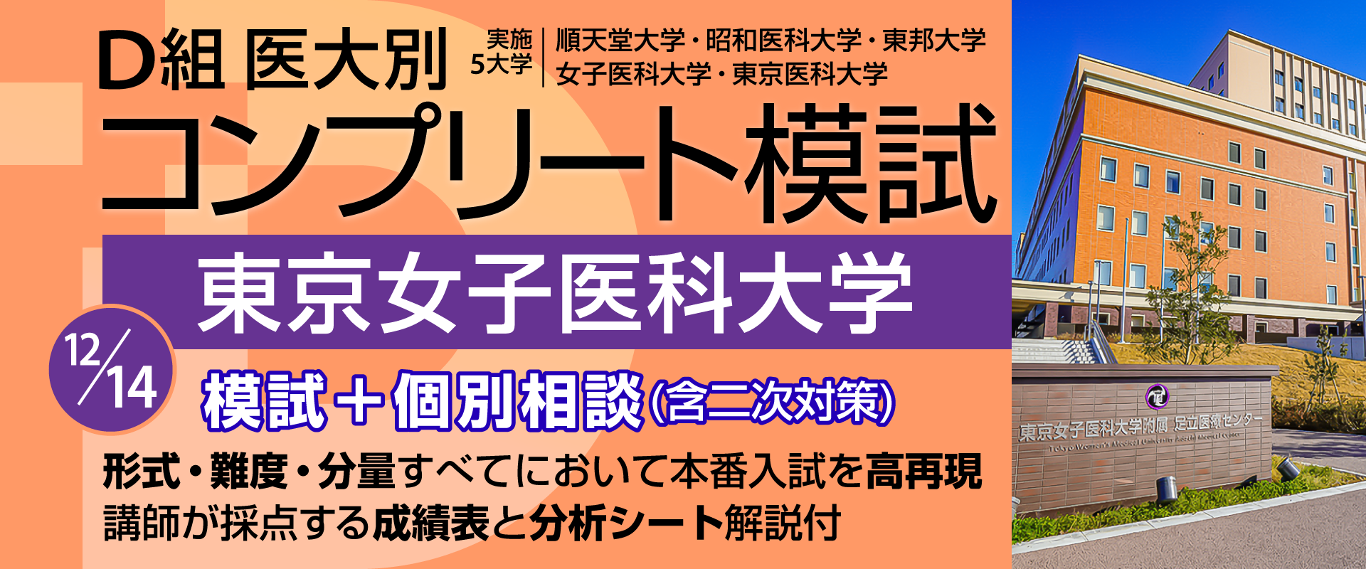 学科試験だけの対策では合格とはなりません。医学部の二次試験は一次試験以上に大学の個性が現れる試験であり、相応の対策が必要です。D組には最高の二次試験対策を実施するにあたって相応しい資料と相応しい指導者があります。他では手に入らないコアな資料も用意しています。是非ともご活用ください。